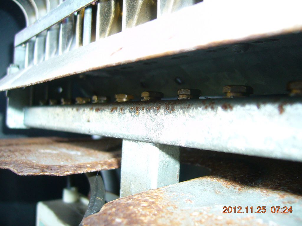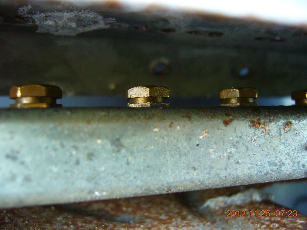 由於原本並無密封元件,因此只能把所有的供氣嘴拆卸後用鋼刷清除銹斑及密合表面,然後再利用鋼針進行供氣嘴孔口的清潔 (似乎有的供氣嘴孔口的確是有污垢),最後小心的鎖附這些供氣嘴 (一共13顆,少一顆都不行…)。回裝上方的火排及瓦斯銅管,確認過點火系統沒有被我搞砸可以正常工作後,當天晚上再使用…..嘿!!...水溫上升,沒有放煙火的聲音了……………